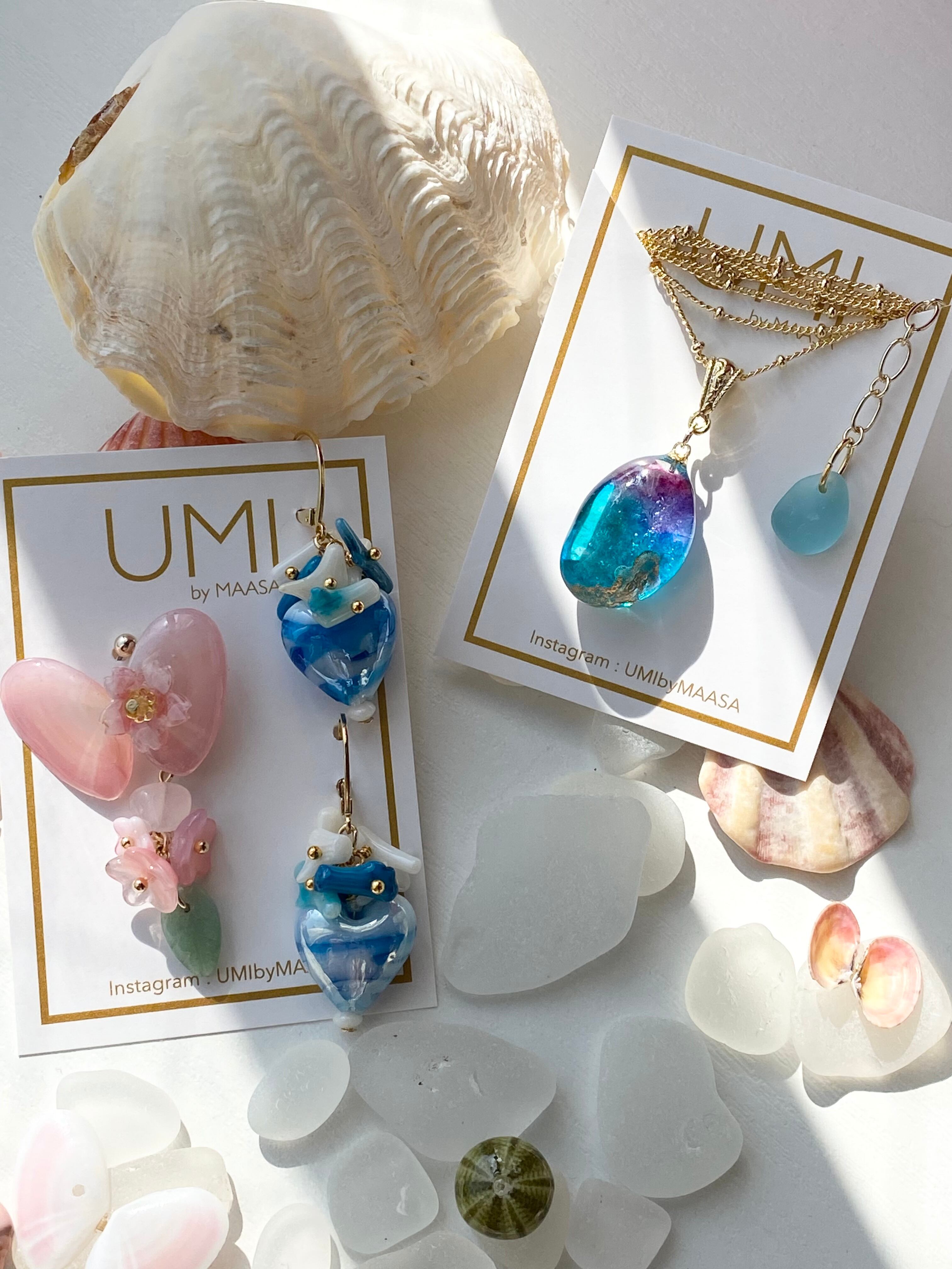 サクラガイの蝶々+ラグーンハートピアス+シージュエルネックレス