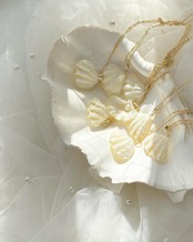 小さなシャコガイをシンプルなペンダントヘッドにしました。裏返っても淡水パールが可愛く見せてくれます。