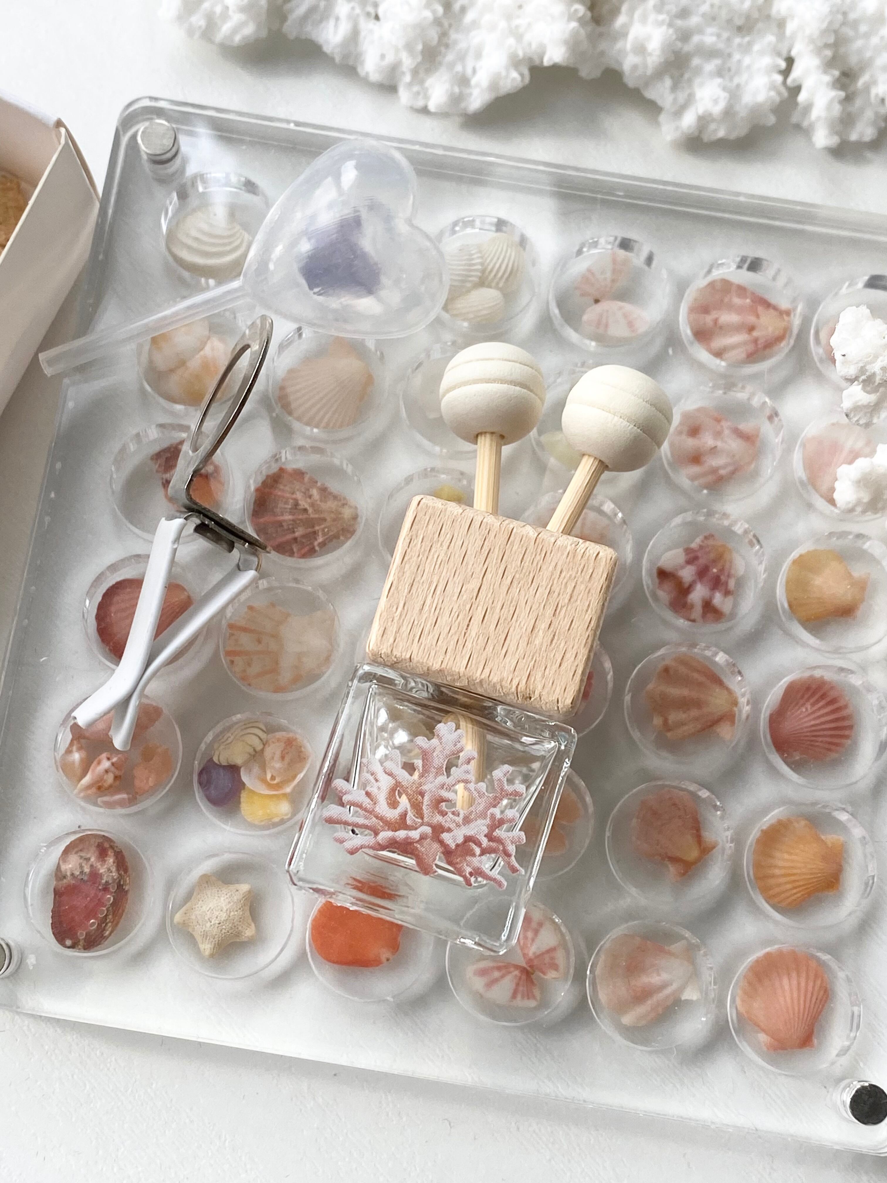 お好きなエッセンシャルオイルや、アロマ、香水を付属のハート形のスポイトで入れてください